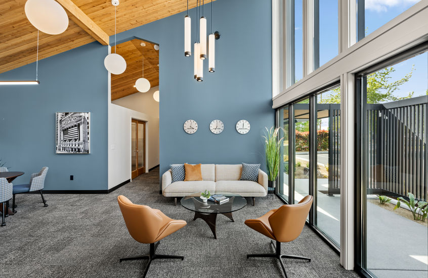We directed the full restroom upgrades with complete finish selection and collaborated with Workspace on new furniture and storage solutions. Exterior services included paint color recommendations and signage consultation to ensure a cohesive, unified design across the property.
